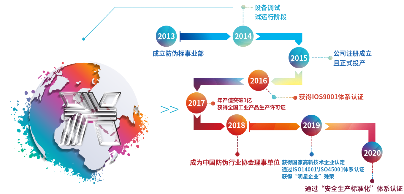 先后获得中国防伪行业协会理事单位,江苏省高新技术企业,国家高新技术企业、国家实用新型专利若干项,先后通过了ISO9001、ISO14001、ISO45001、三级安全标准化等体系认证,获得 “明星企业”等殊荣。