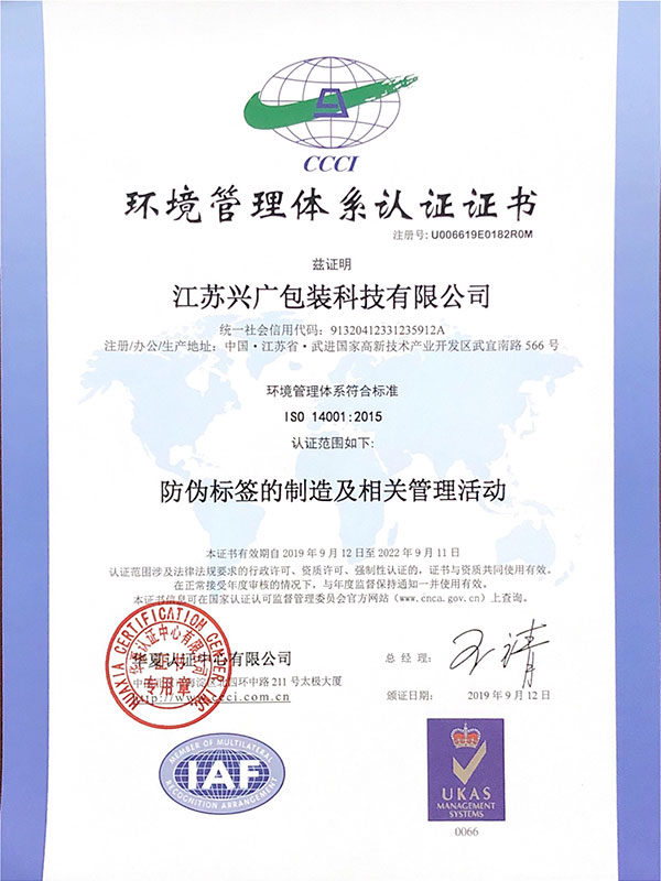 江苏兴广包装科技有限公司肩负“防伪科技、持续创新”的伟大使命,致力于技术创新与发展。在中国经济迈向高质量增长及发展的关键时期,江苏兴广包装科技有限公司领导行业绿色环保发展,致力于打造“科技含量高、产品附加值高”的现代化企业。