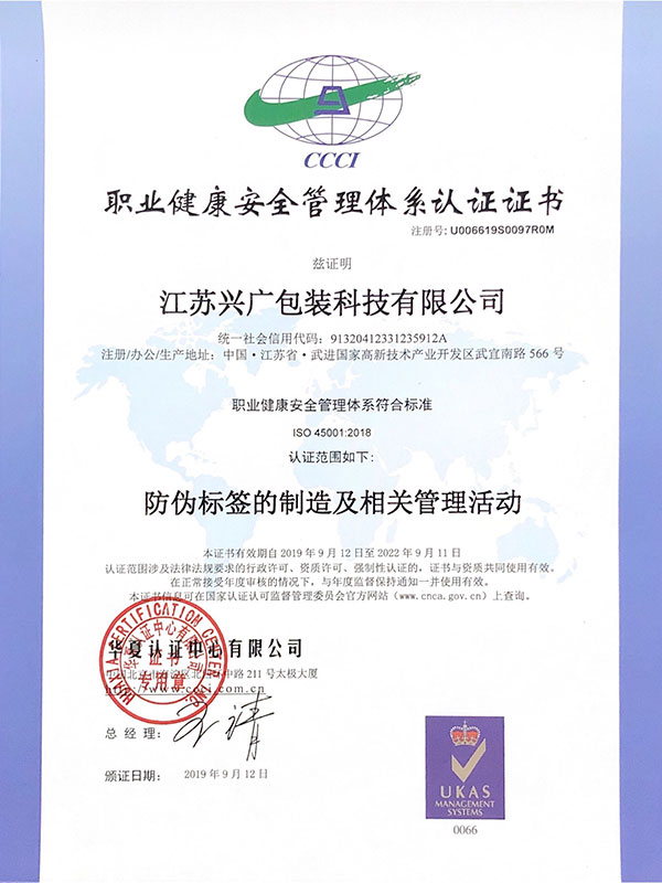 新时代、新征程,在未来发展中,江苏兴广包装科技有限公司将持续深耕防伪标签行业,不断创新发展模式、加大科技创新力度,为实现“防伪科技,持续创新”的宏伟愿景而努力奋斗。